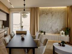 Jasny fornir kamienny S White w dużym formacie w jasnym i przestronnym holu domowym Fornir kamienny S White w dużym formacie Jasny fornir kamienny S White w dużym formacie został zastosowany w przestronnym holu gdzie dominują wszelkie odcienie bieli oraz szarości. Aby przełamać białe elementy wykończeniowe i wprowadzić ciekawy akcent na ścianie, w której znajdują się drzwi ukryte, wykorzystano jasno szary fornir kamienny S White z delikatnymi przebarwieniami grafitu i rudości. Matowa jasna okładzina kamienna na ścianie w holu pięknie uzupełnia się z białą polerowaną podłogą. Dodatkowym atutem w białej nowoczesnej aranżacji jest sposób pocięcia forniru kamiennego. Tym sposobem możemy ozdobić kamieniem naturalnym wielkie powierzchnie na klatkach schodowych czy ścianach telewizyjnych oraz wysokie ściany elewacji. Jasny fornir kamienny S White na ścianie i drzwiach ukrytych zaimpregnowano ochronnym impregnatem LovedStone Invisible Coating . Fornir kamienny S White